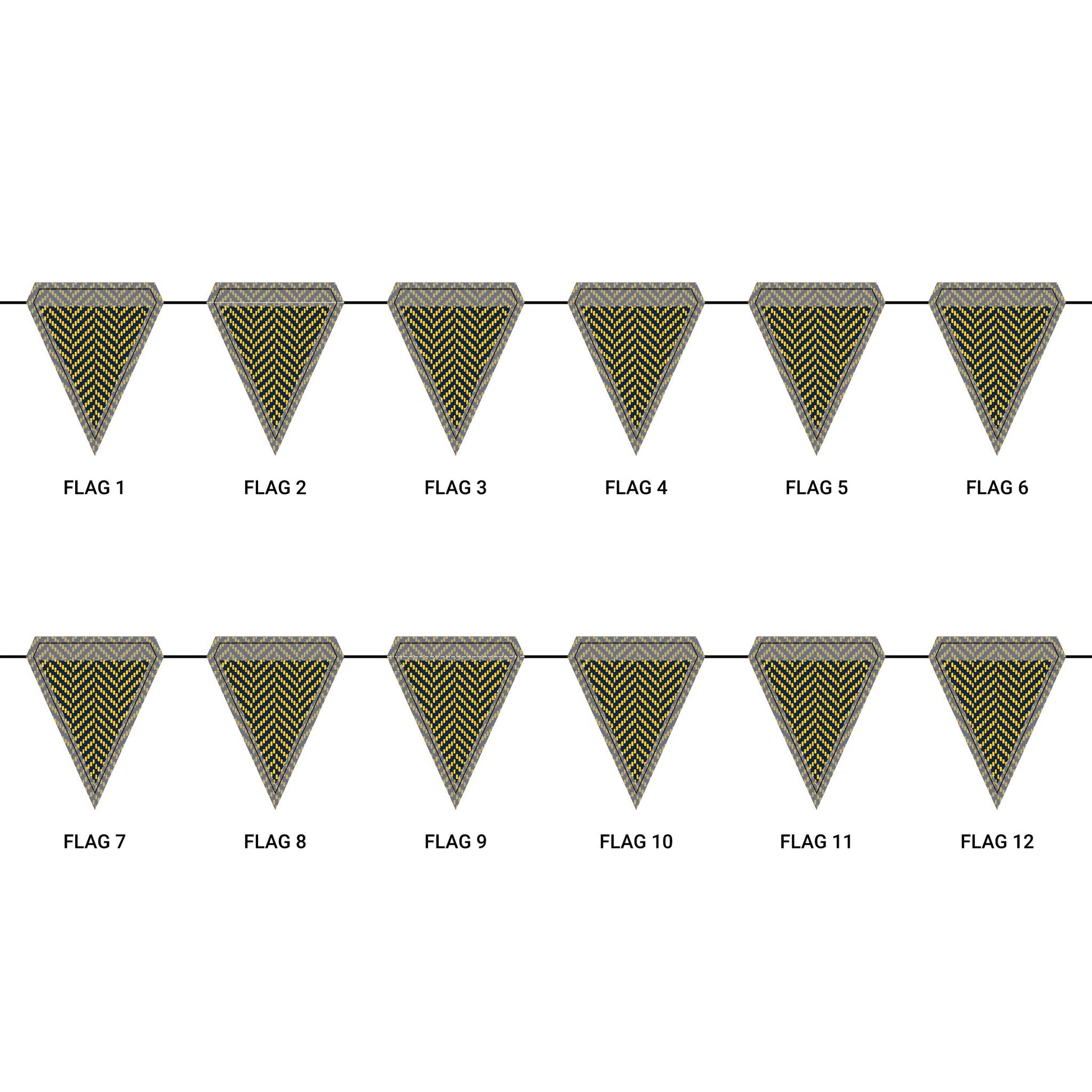 Length: 10.5 ft (3.2 m), 12 flags per garland