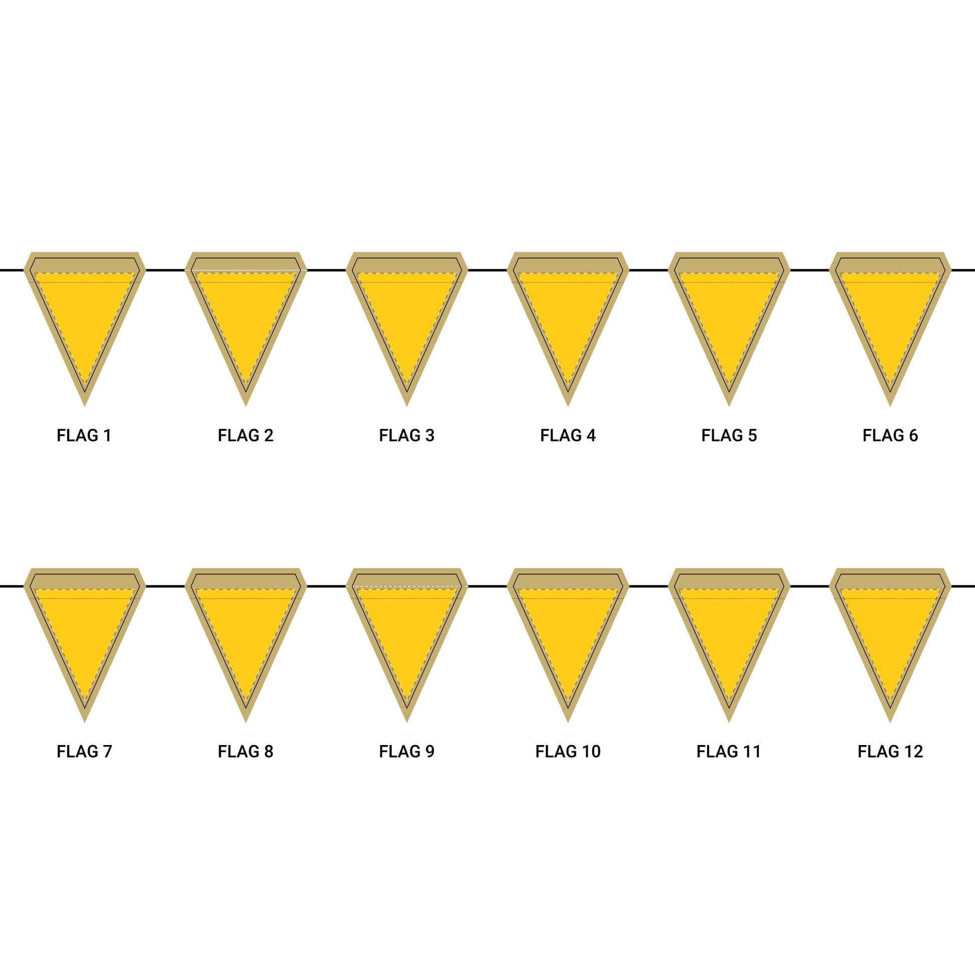 Length: 10.5 ft (3.2 m), 12 flags per garland