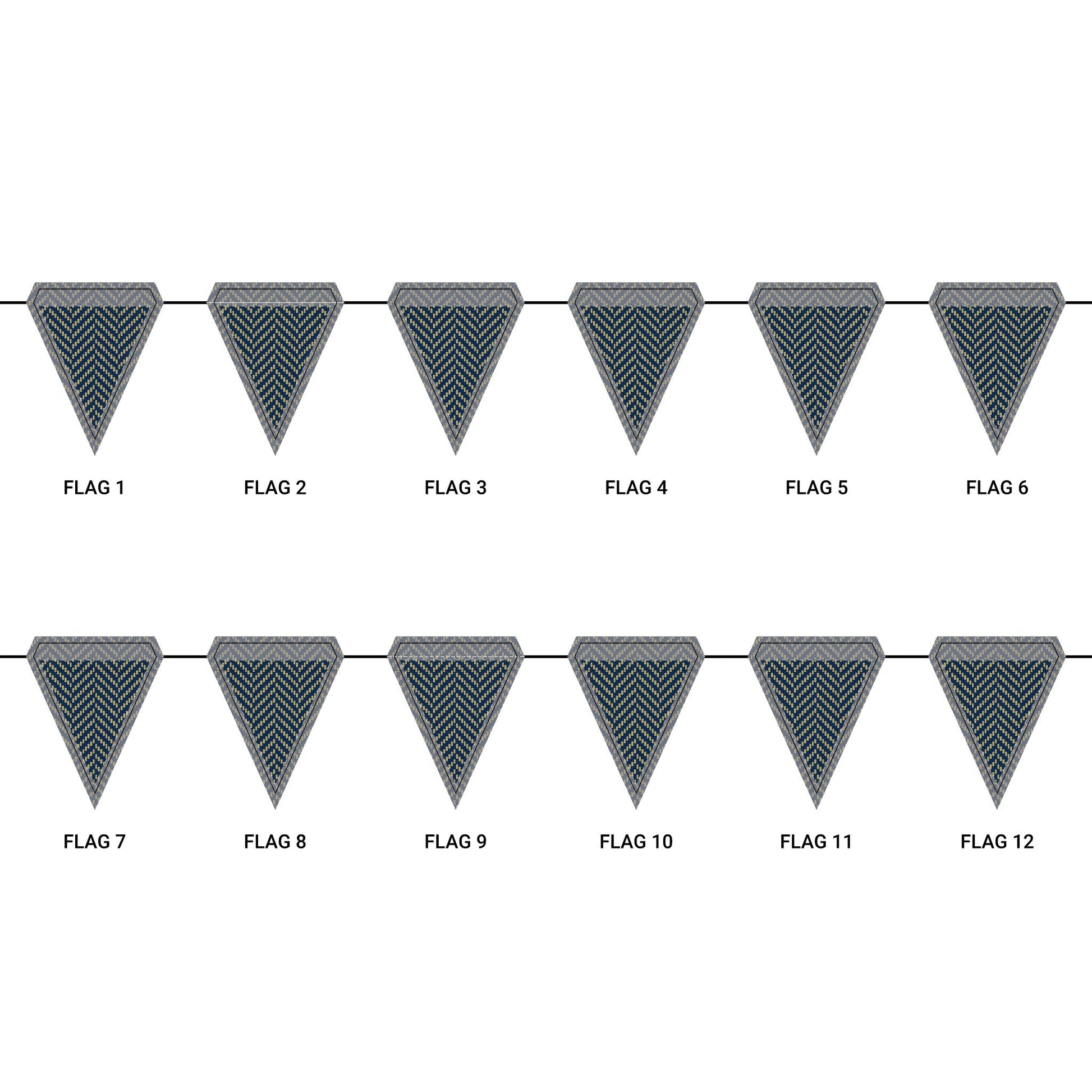 Length: 10.5 ft (3.2 m), 12 flags per garland