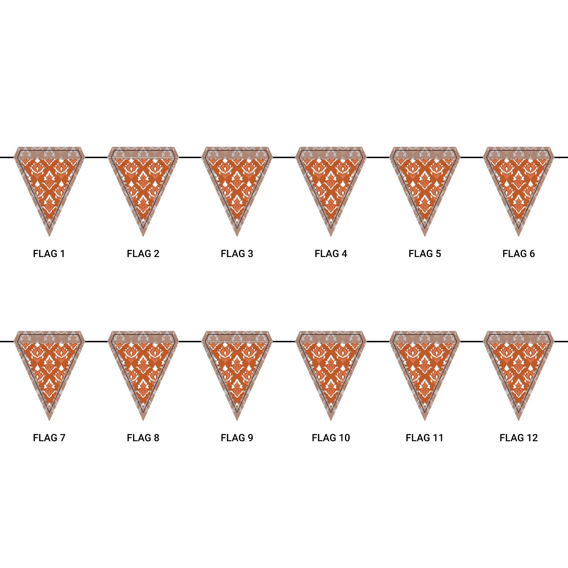 Length: 10.5 ft (3.2 m), 12 flags per garland