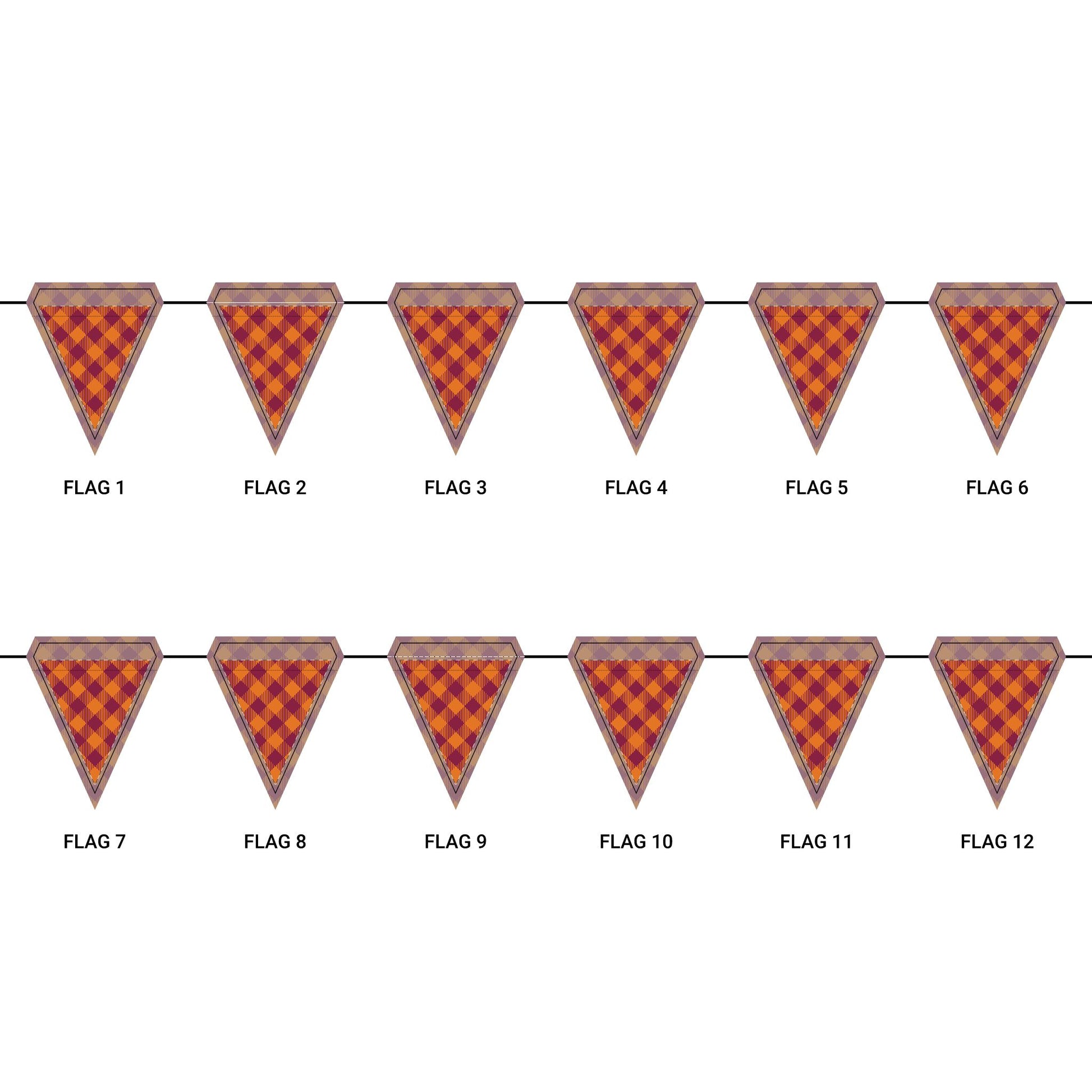 Length: 10.5 ft (3.2 m), 12 flags per garland
