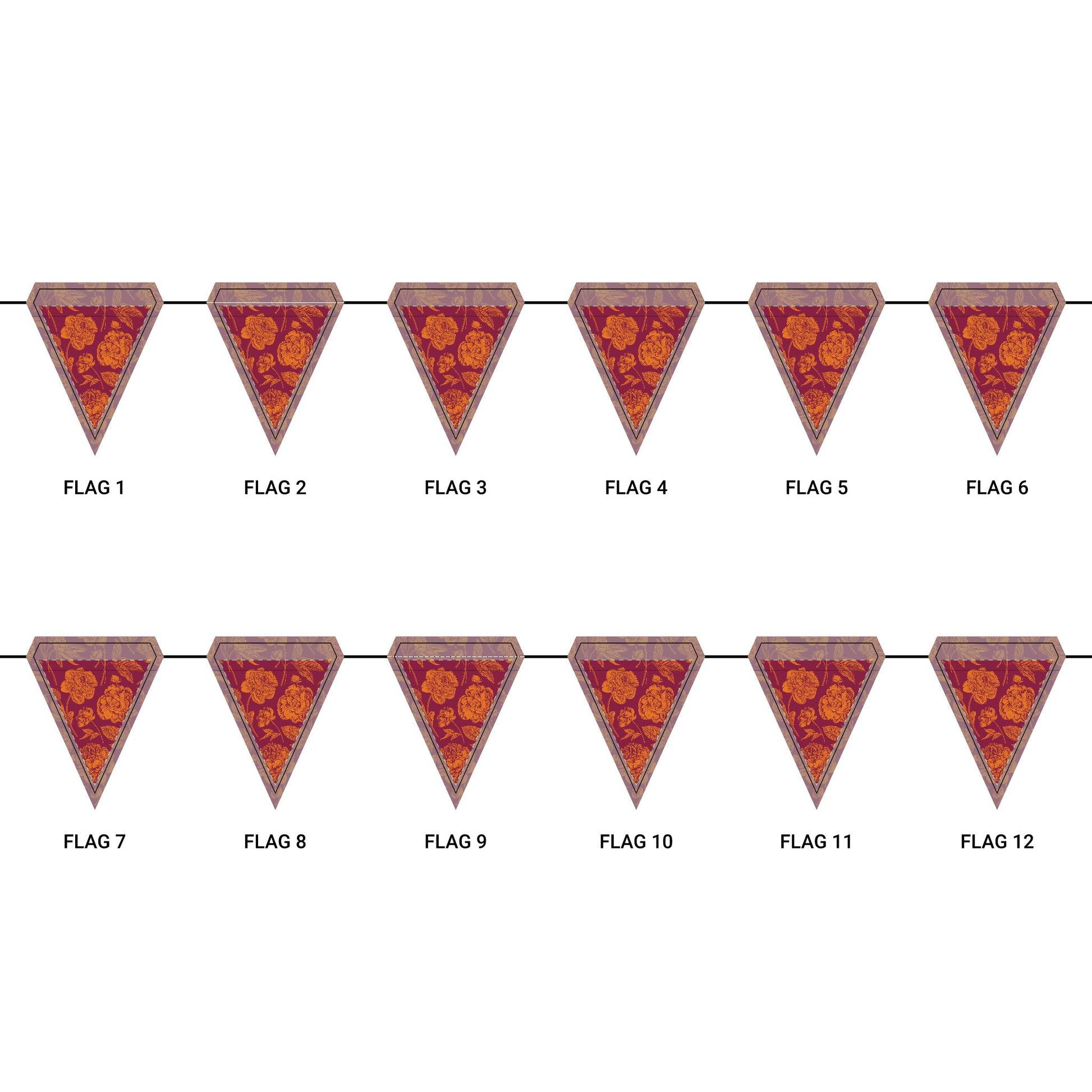Length: 10.5 ft (3.2 m), 12 flags per garland