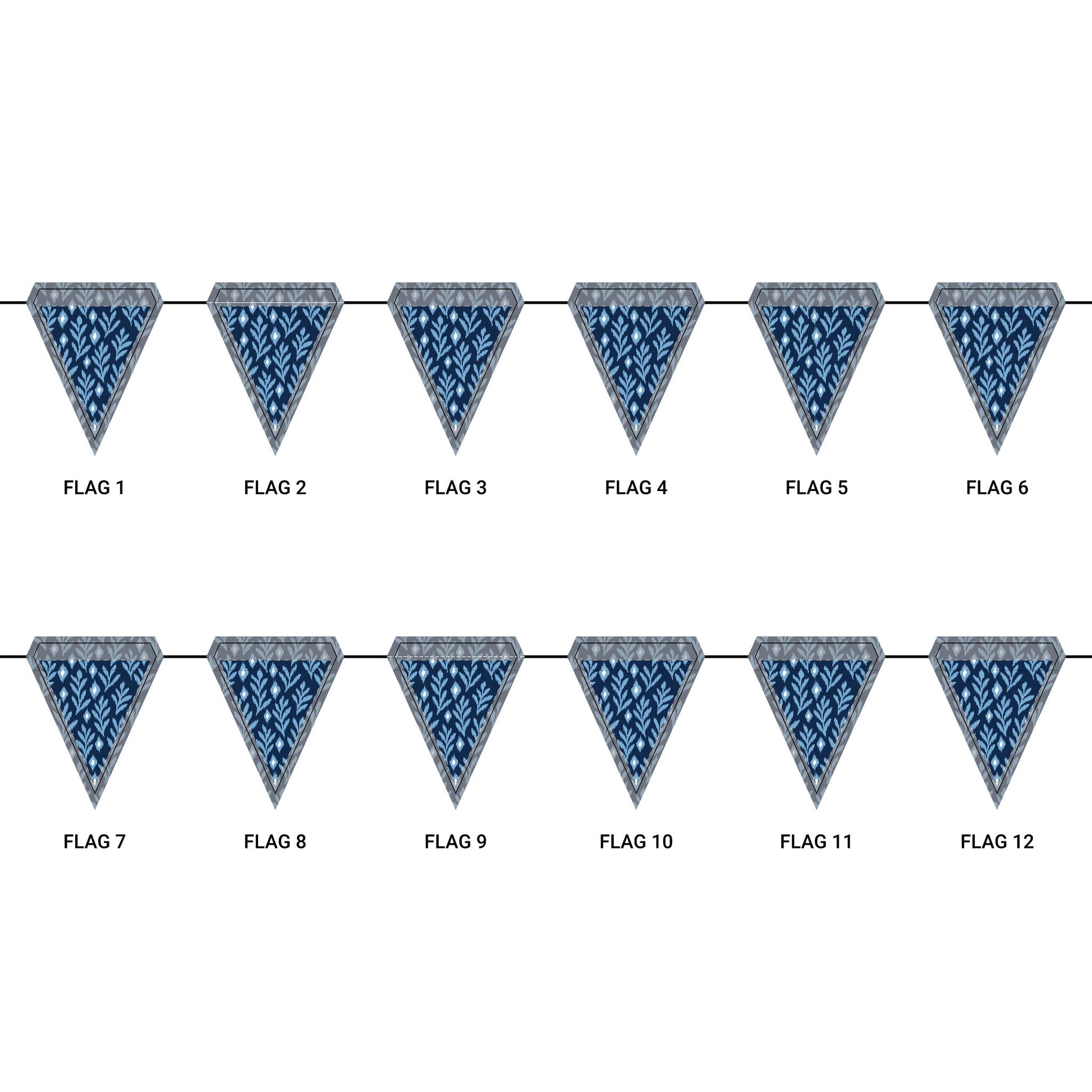 Length: 10.5 ft (3.2 m), 12 flags per garland