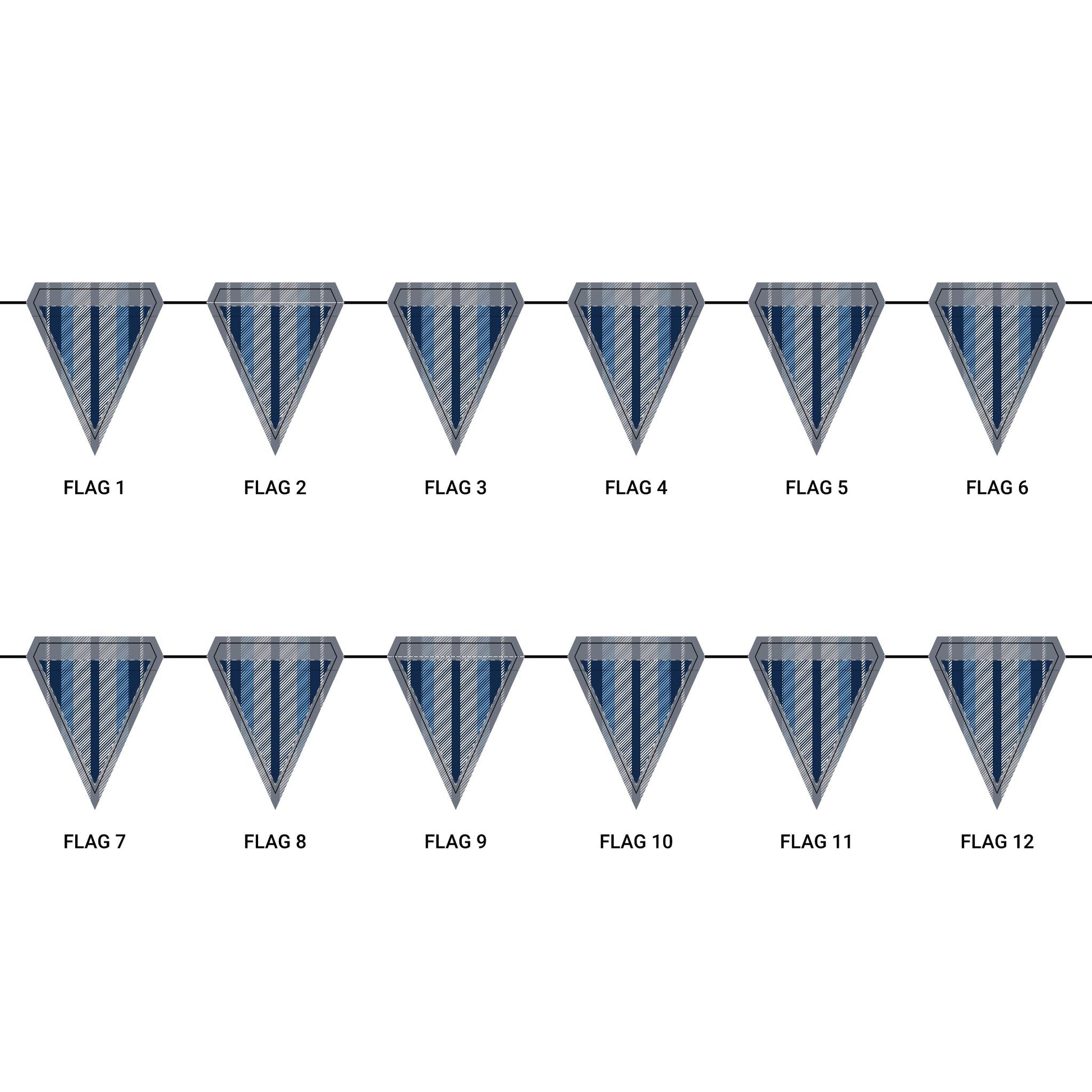Length: 10.5 ft (3.2 m), 12 flags per garland