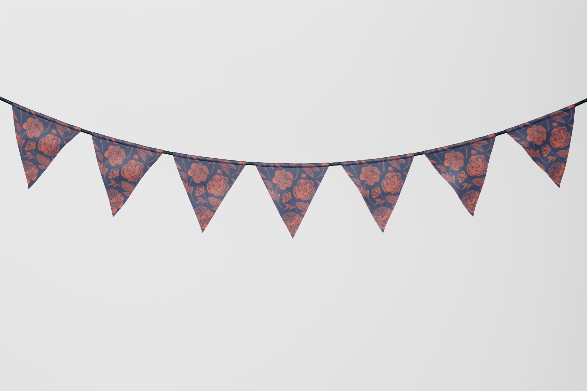 Made from lightweight polyester with double-sided prints, the triangles come pre-stitched on a ribbon for easy hanging indoors or outdoors.