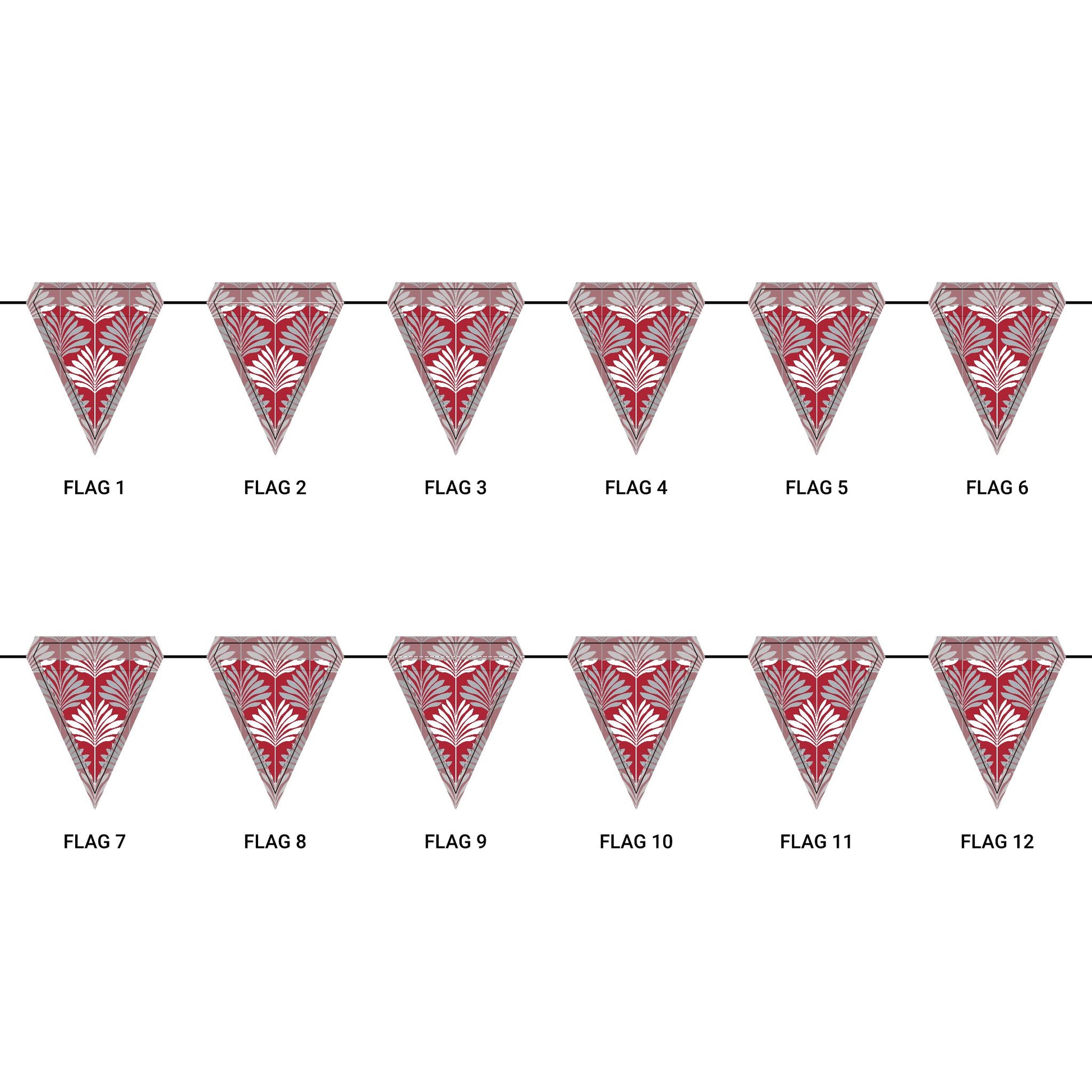Length: 10.5 ft (3.2 m), 12 flags per garland
