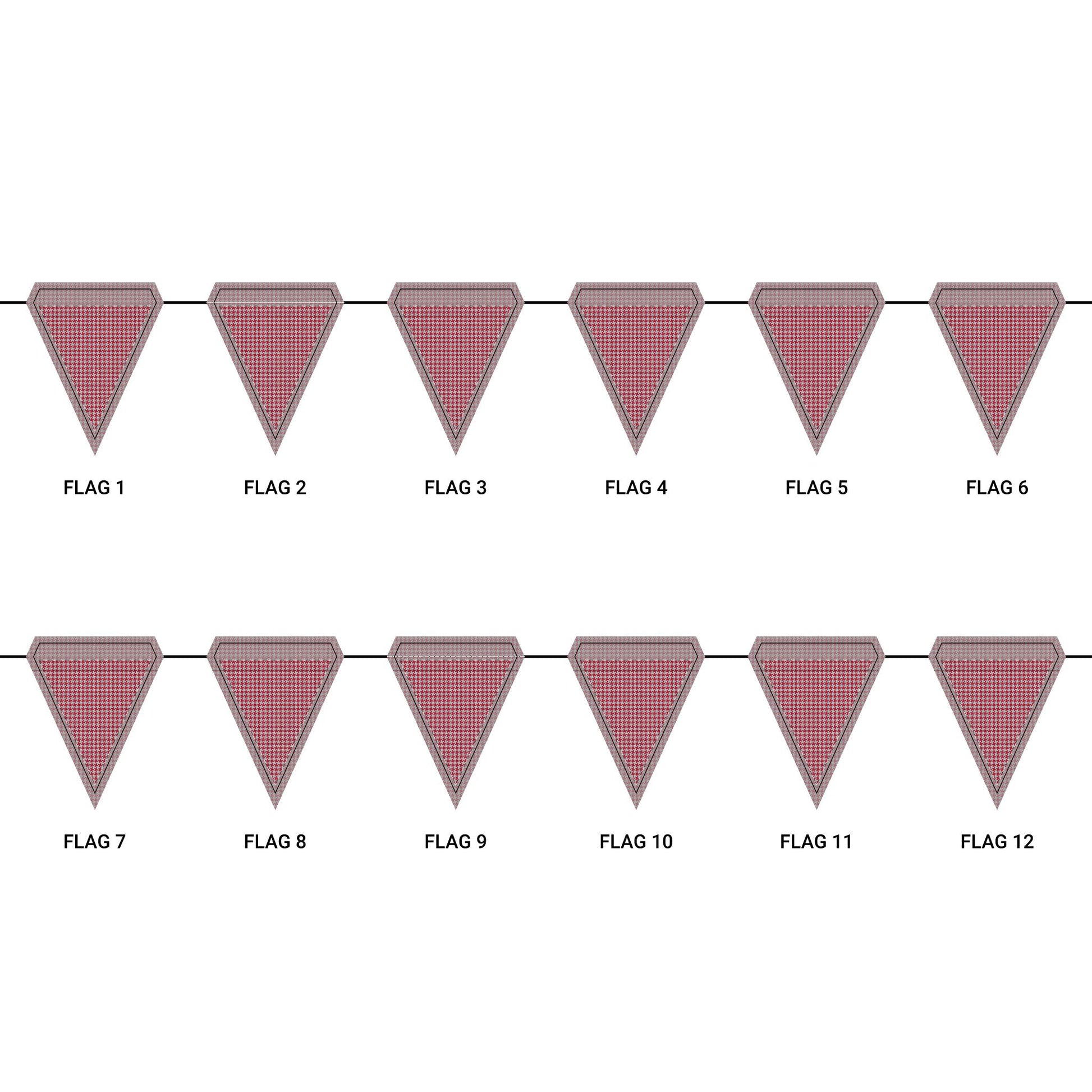 Length: 10.5 ft (3.2 m), 12 flags per garland