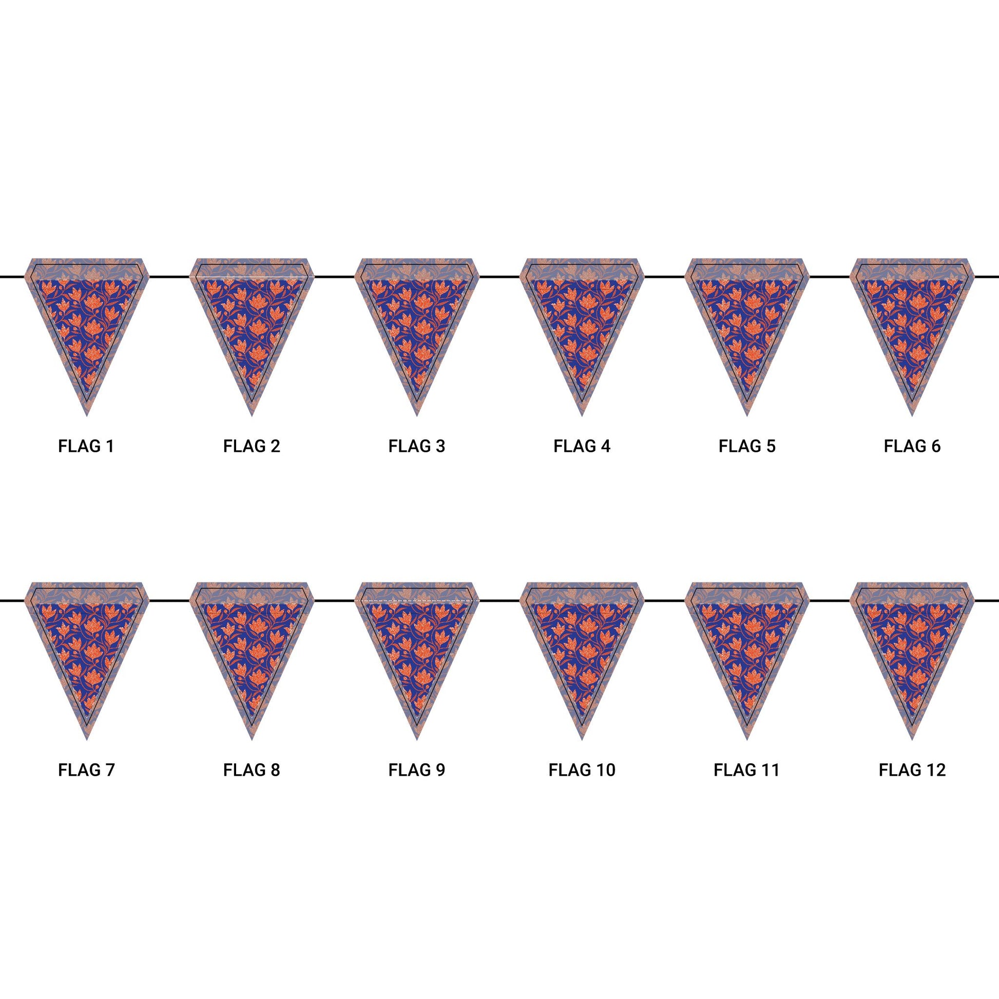Length: 10.5 ft (3.2 m), 12 flags per garland