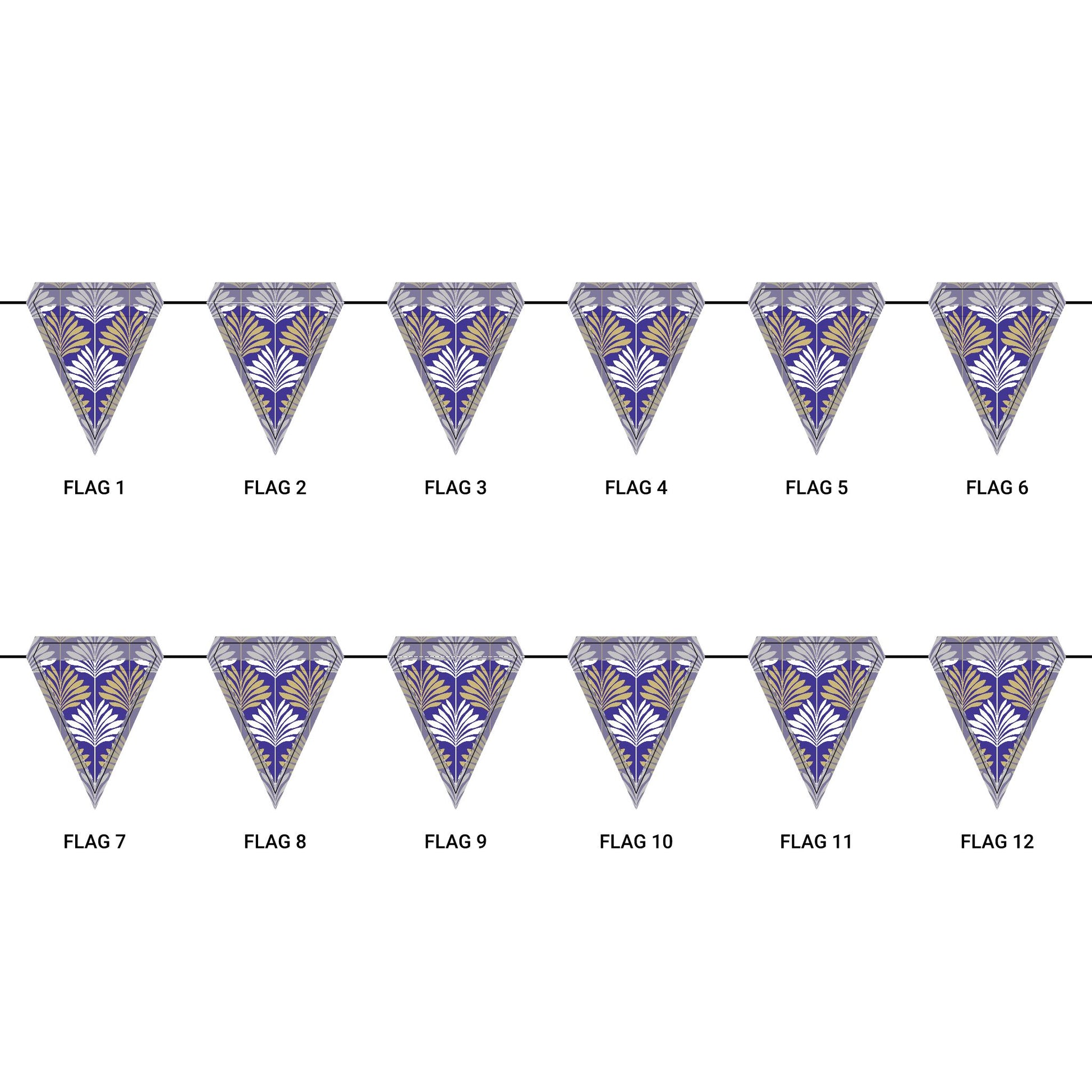 Length: 10.5 ft (3.2 m), 12 flags per garland