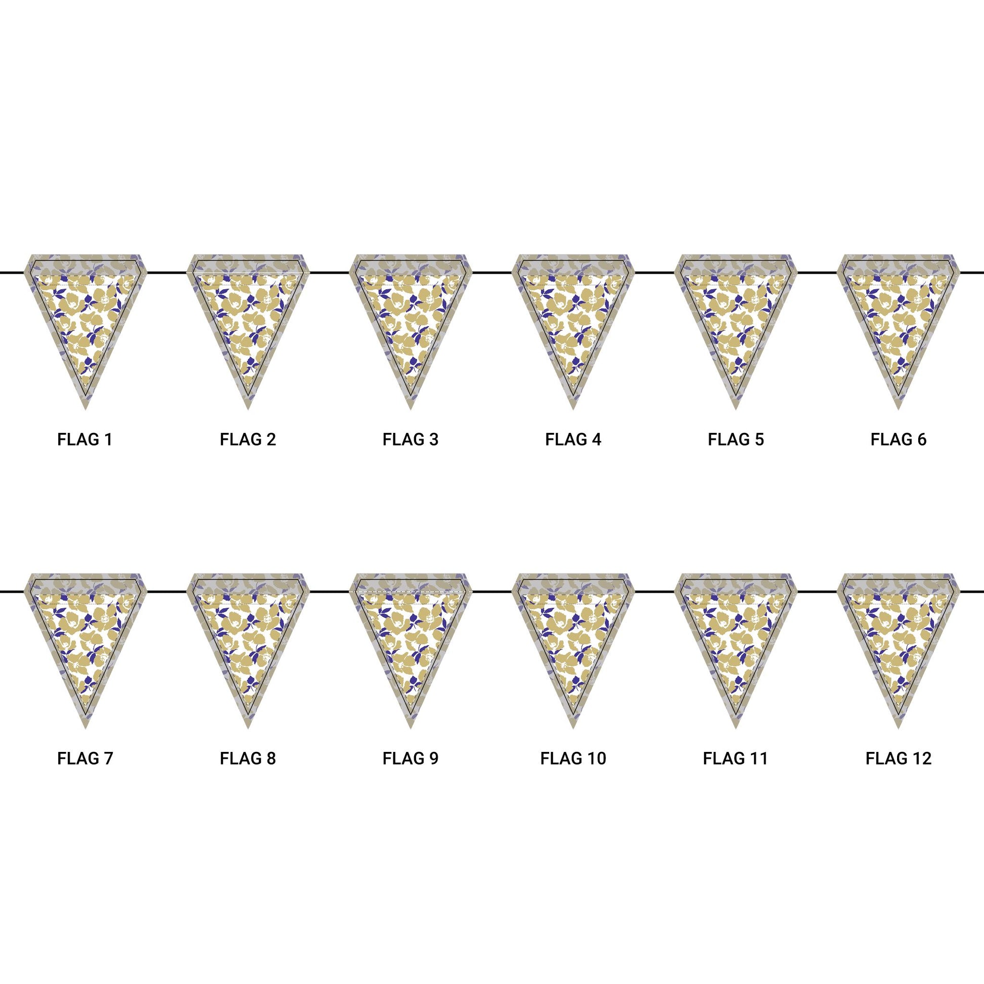 Length: 10.5 ft (3.2 m), 12 flags per garland