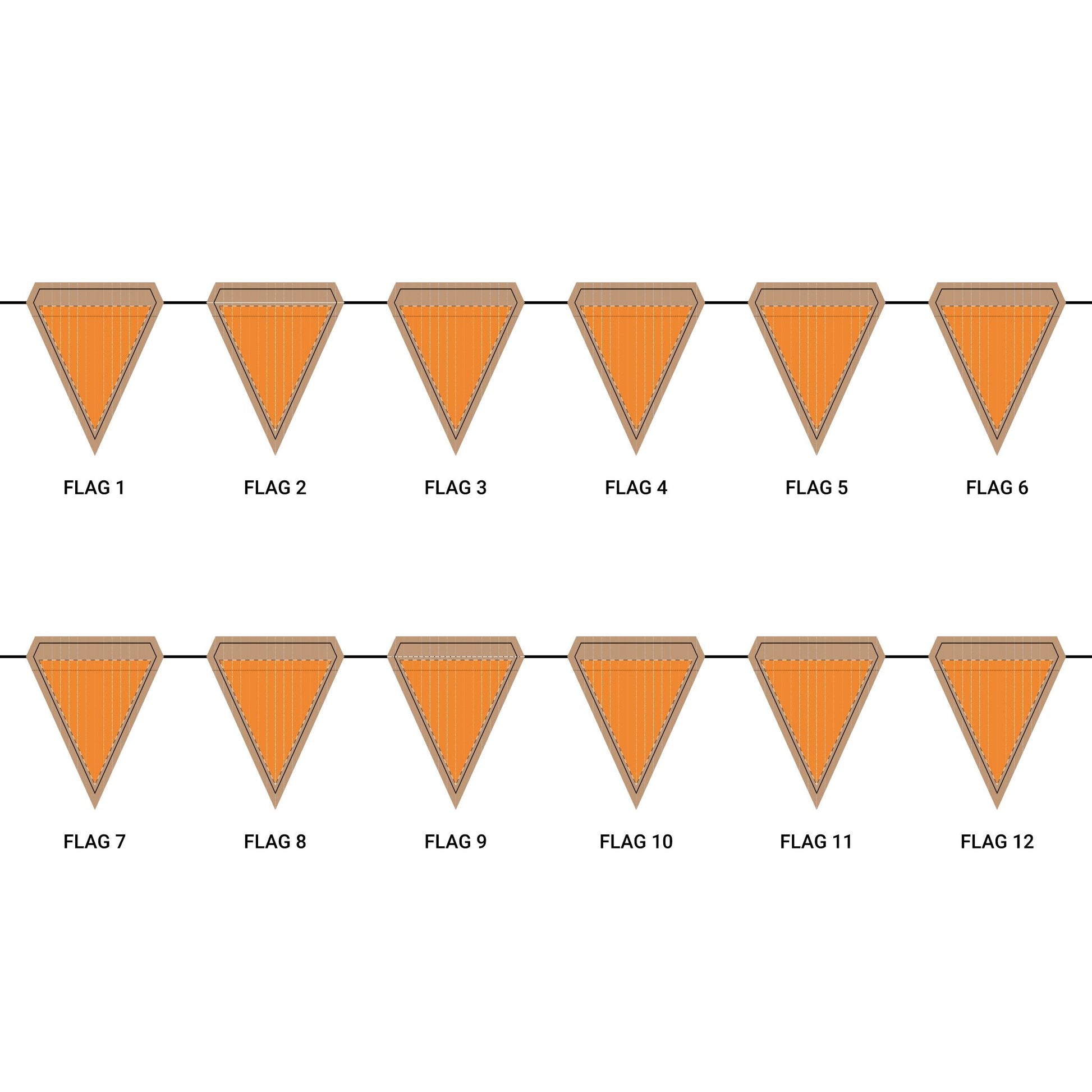 Length: 10.5 ft (3.2 m), 12 flags per garland