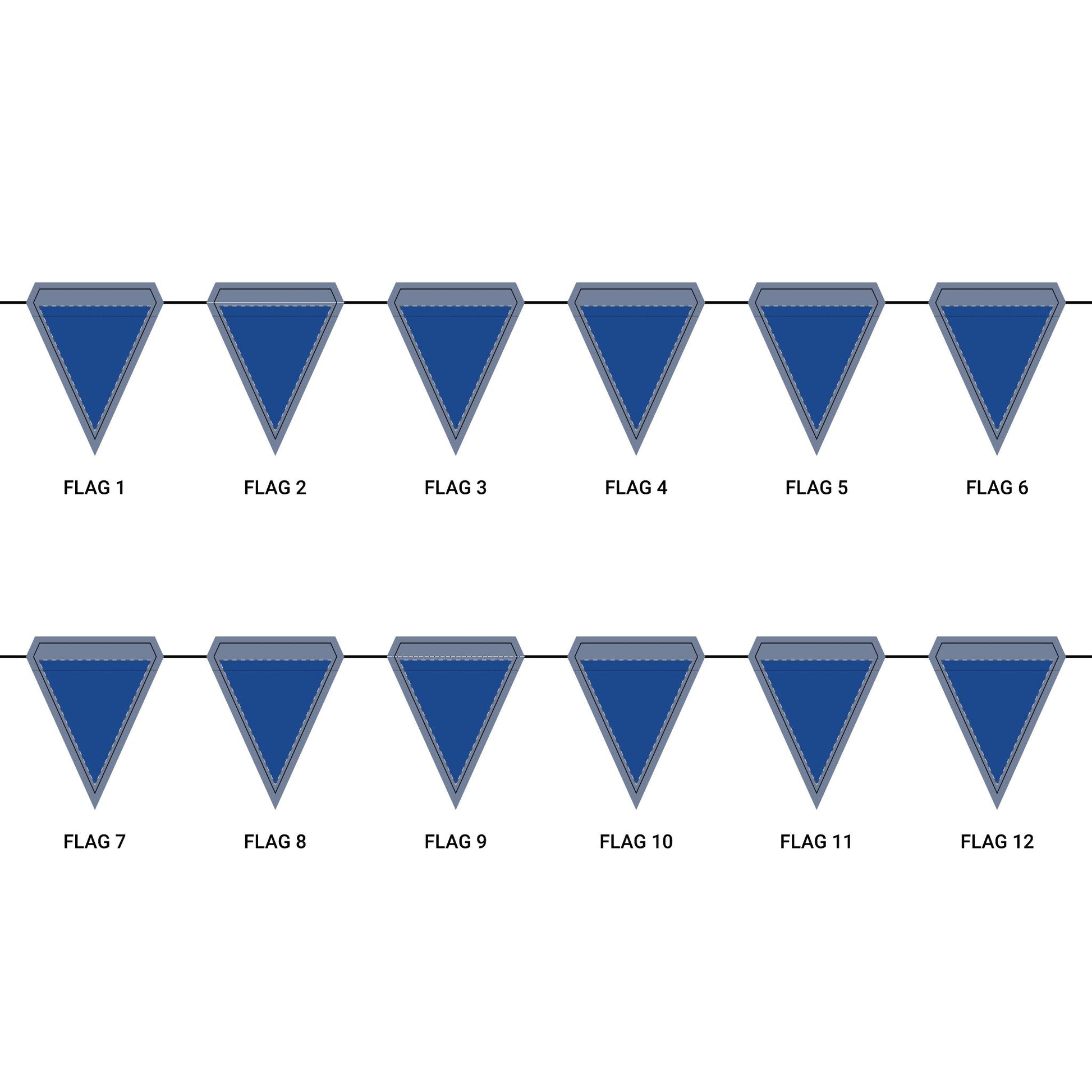Length: 10.5 ft (3.2 m), 12 flags per garland