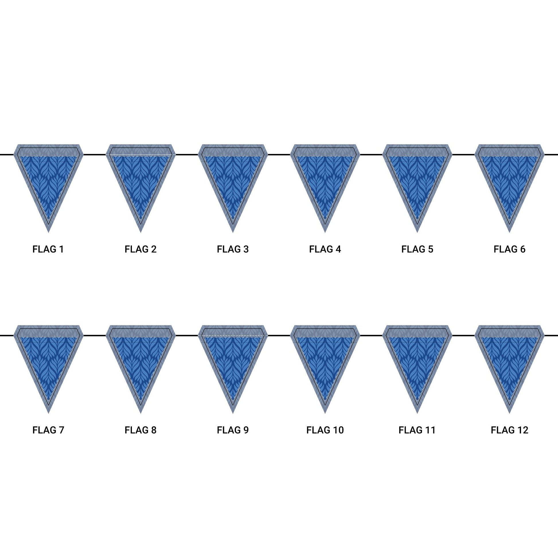 Length: 10.5 ft (3.2 m), 12 flags per garland