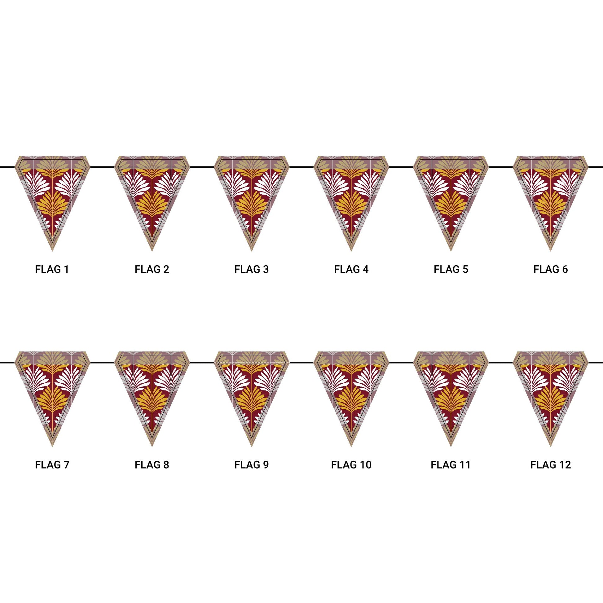 Length: 10.5 ft (3.2 m), 12 flags per garland