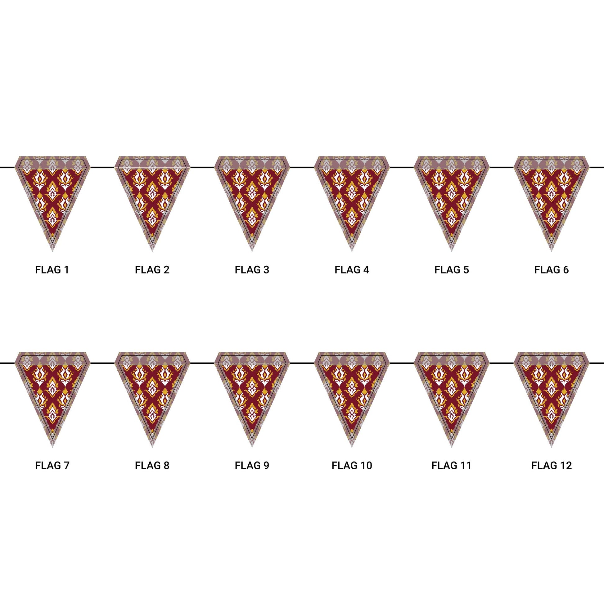 Length: 10.5 ft (3.2 m), 12 flags per garland