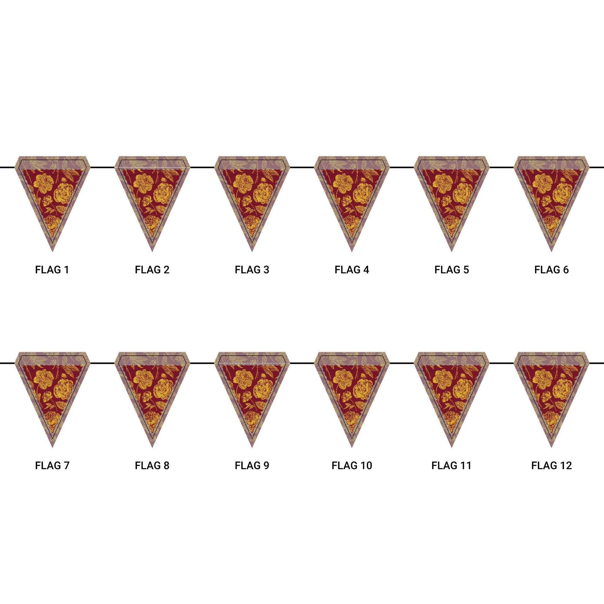 Length: 10.5 ft (3.2 m), 12 flags per garland