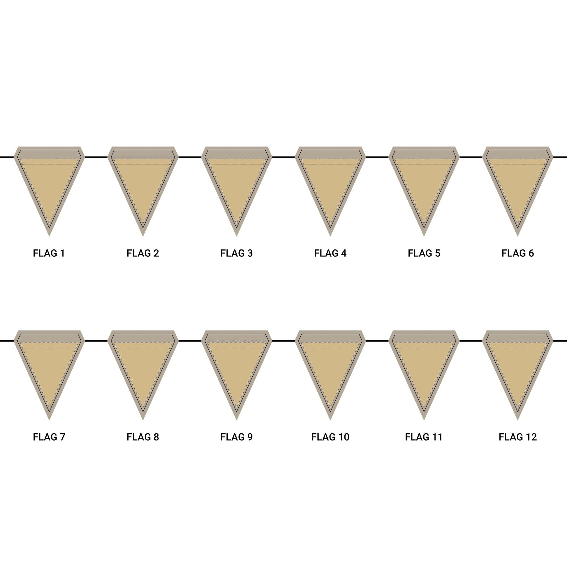 Length: 10.5 ft (3.2 m), 12 flags per garland