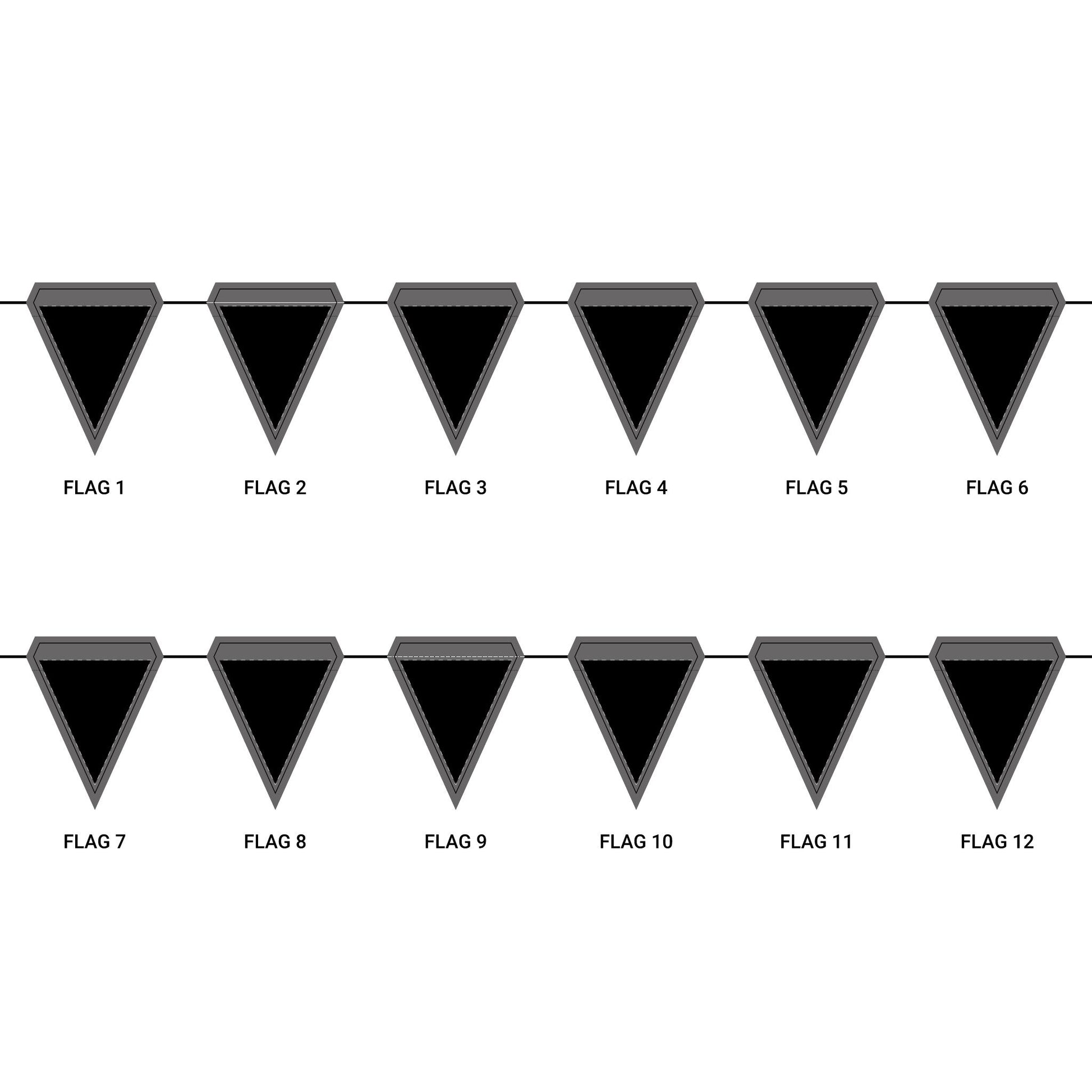 Length: 10.5 ft (3.2 m), 12 flags per garland