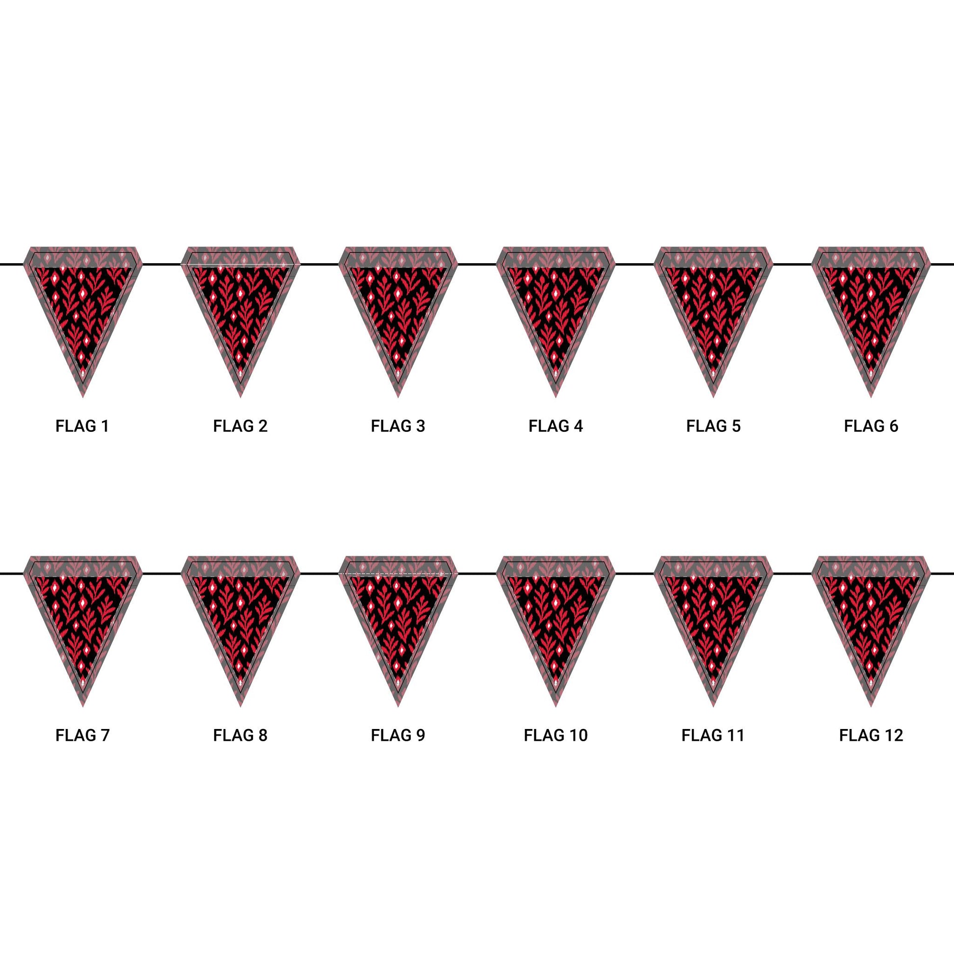 Length: 10.5 ft (3.2 m), 12 flags per garland