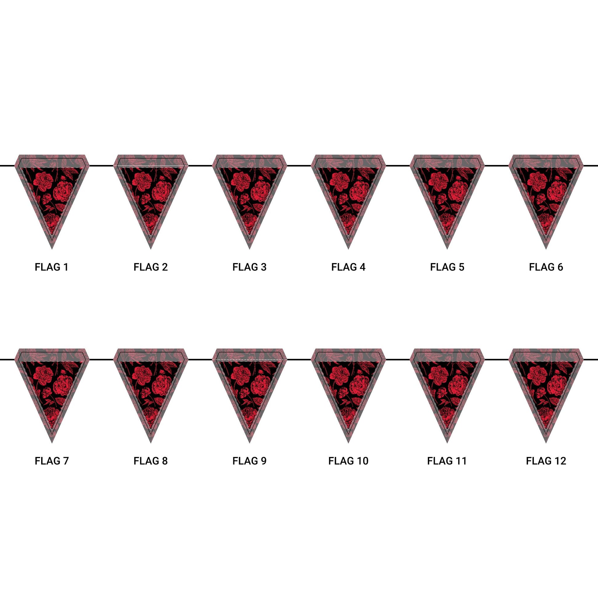 Length: 10.5 ft (3.2 m), 12 flags per garland