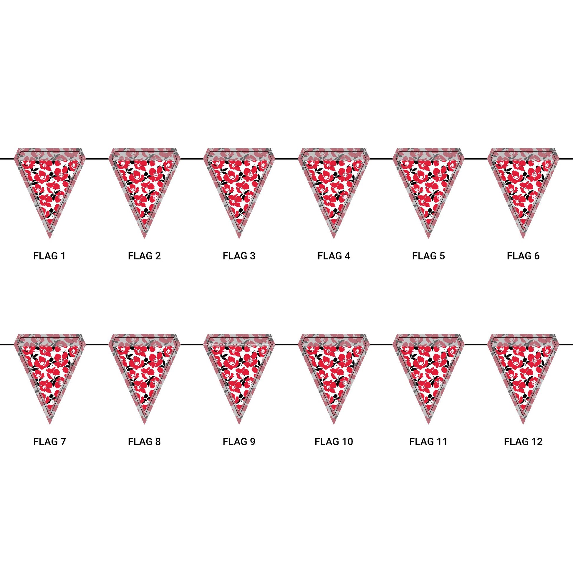 Length: 10.5 ft (3.2 m), 12 flags per garland