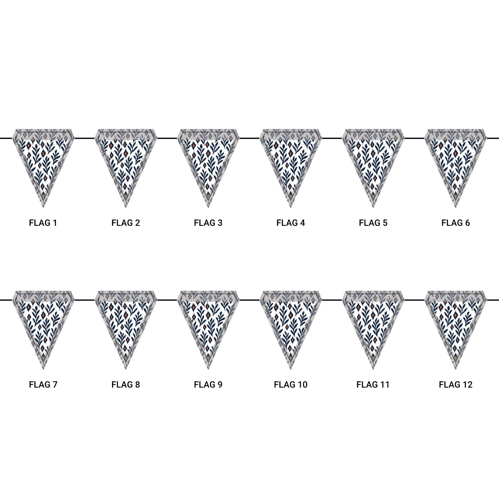 Length: 10.5 ft (3.2 m), 12 flags per garland