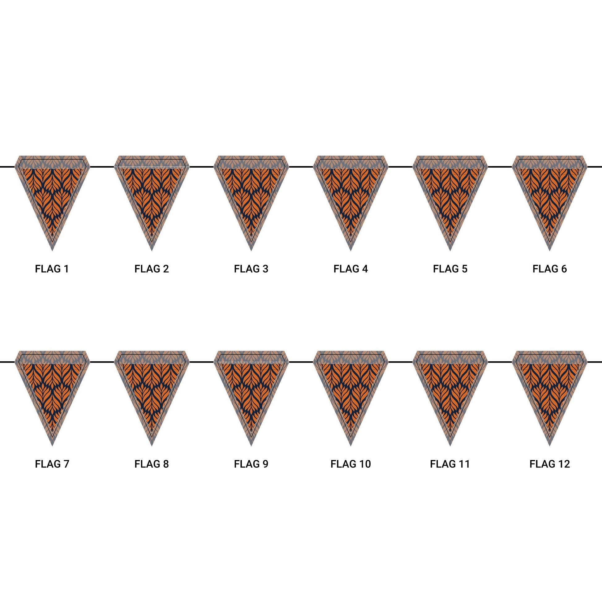 Length: 10.5 ft (3.2 m), 12 flags per garland