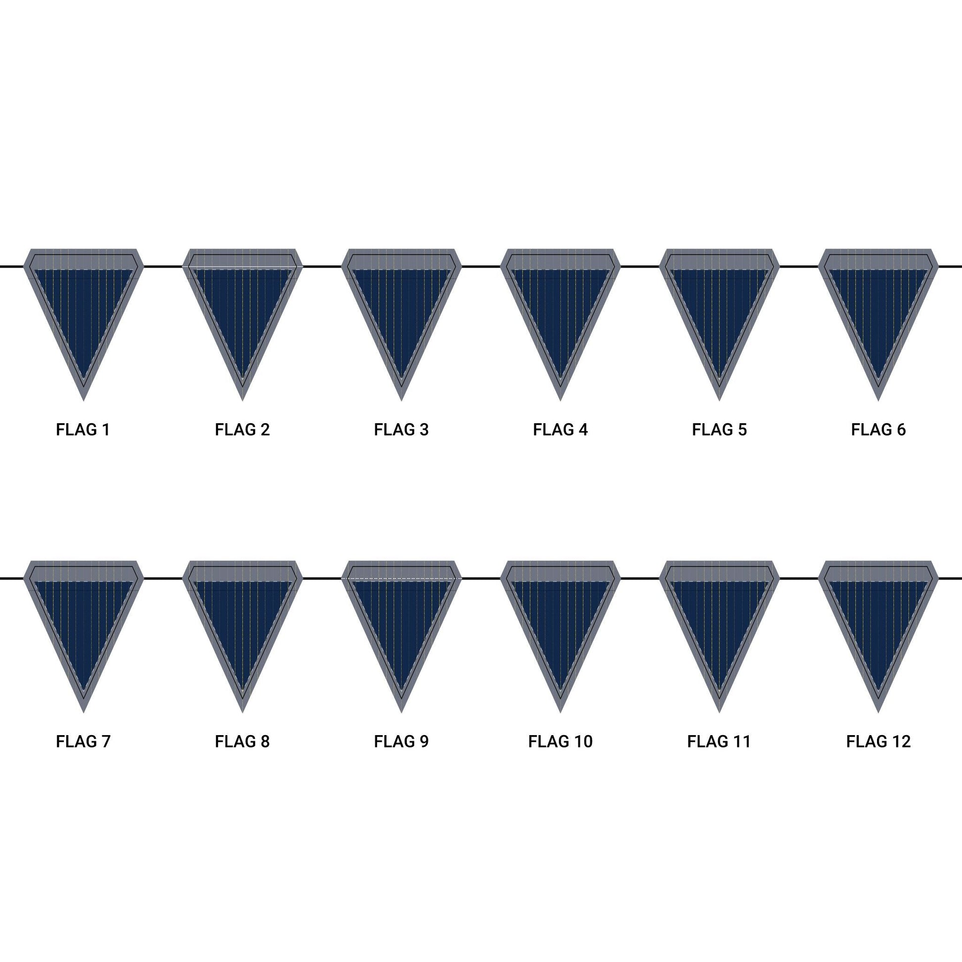 Length: 10.5 ft (3.2 m), 12 flags per garland