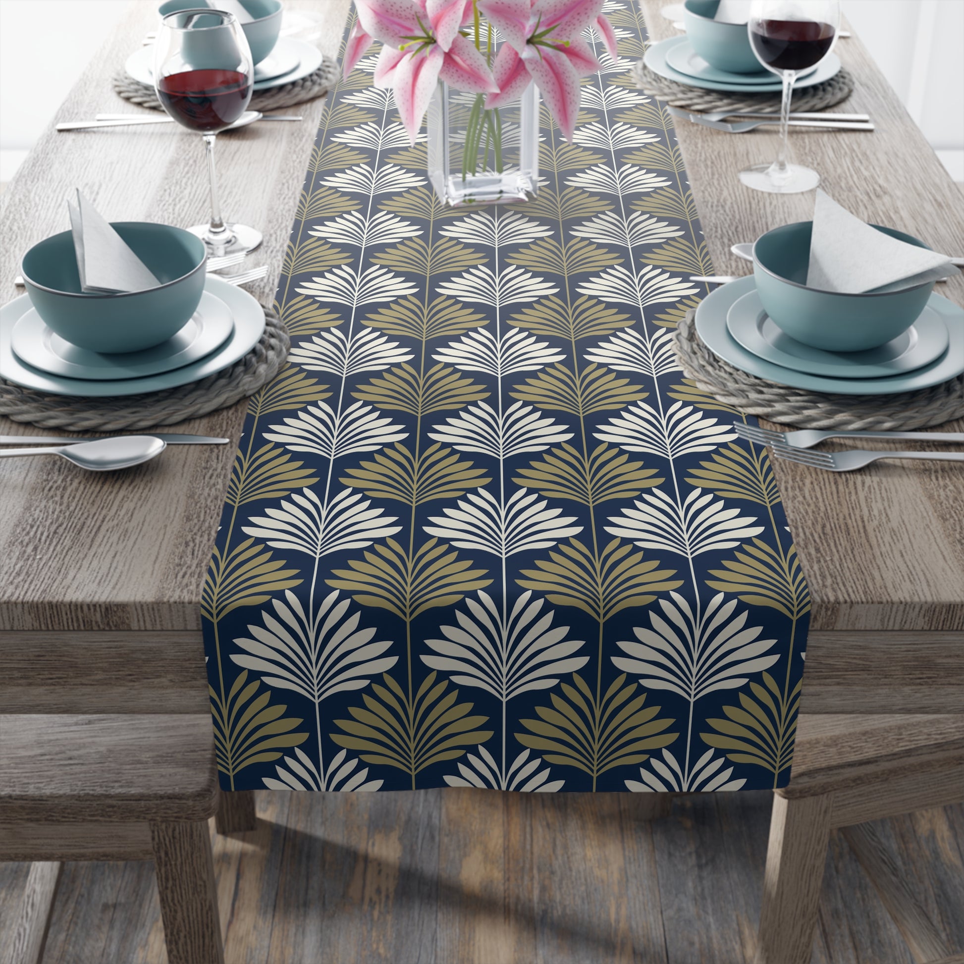 Pair with our placemats and cloth napkins for a complete tablescape that feels both gracious and inviting. Each runner is printed to order, so small variations in placement or scale make yours as unique as the memories shared around it.